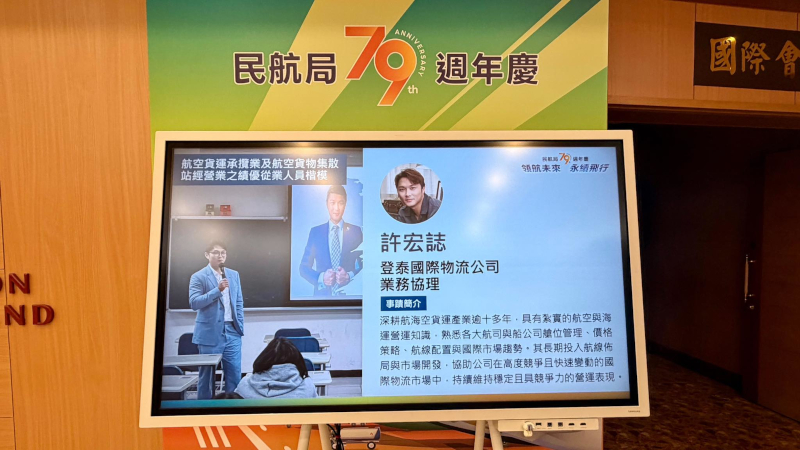 恭賀登泰許宏誌 (Hans Hsu)榮獲「航空貨運承攬業暨航空貨物集散站經營業 績優從業人員楷模」